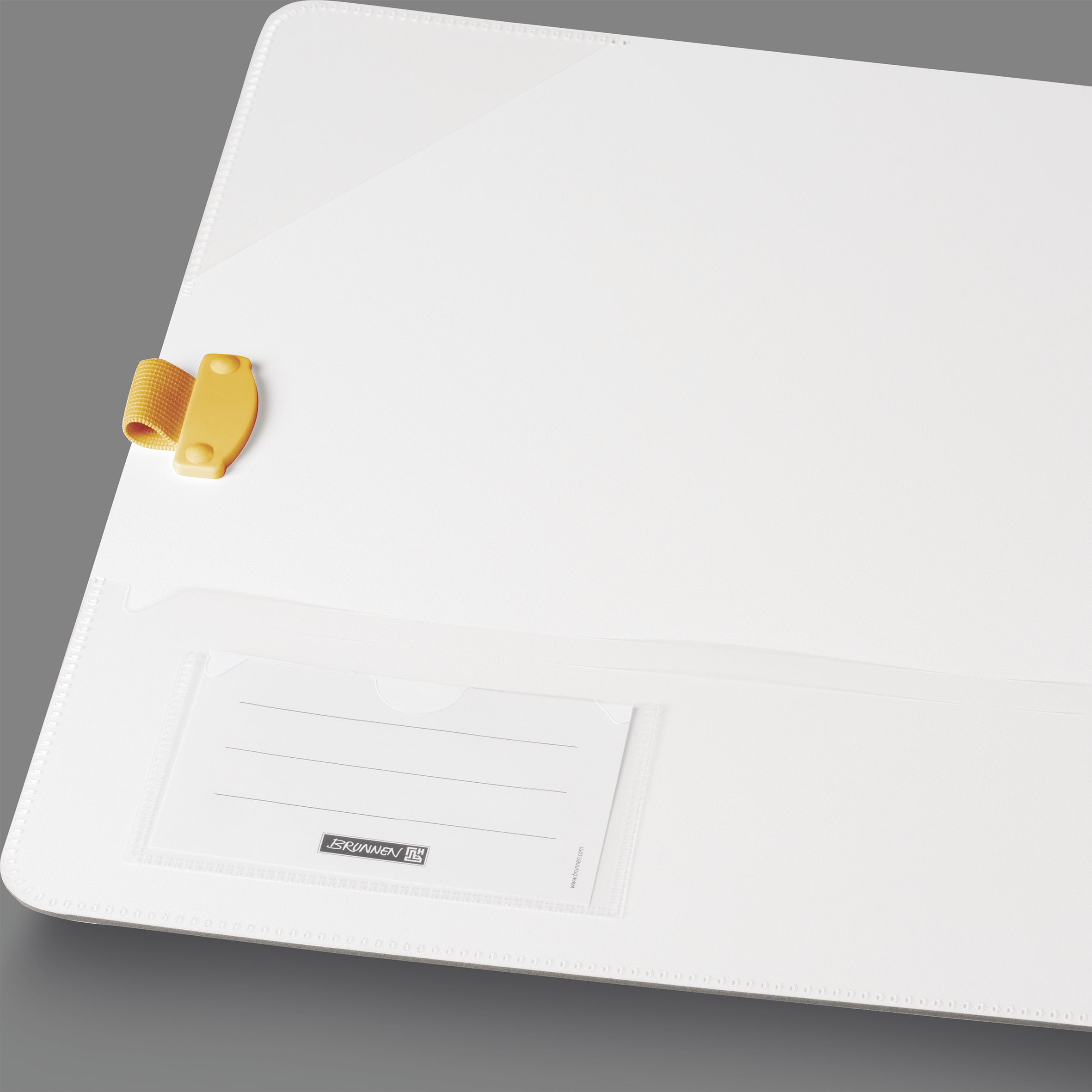 - Mit Stiftschlaufe, Gummizugverschluss, Einstecktasche im Vorderdeckel und flachem Rücken mit Beschriftungsetikett