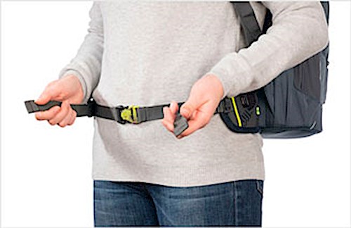 Der Beckengurt trägt mitunter das Hauptgewicht des Rucksacks. Für eine optimale Anpassung und Gewichtsverteilung müssen nur die Straps des Gurts nach vorne gezogen werden und der Hüftgurt hat sofort einen perfekten Sitz.