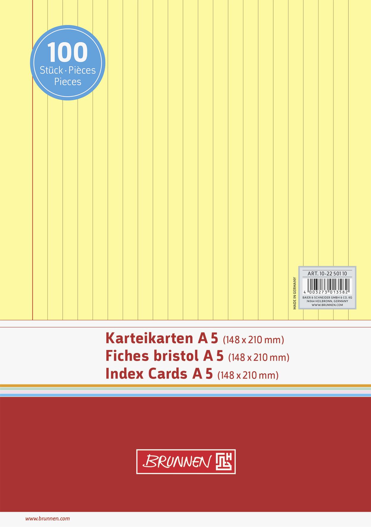Produktinformationen "Karteikarten A5 liniert gelb von Brunnen 102250110 (, 100 Stück, eingeschweißt)"