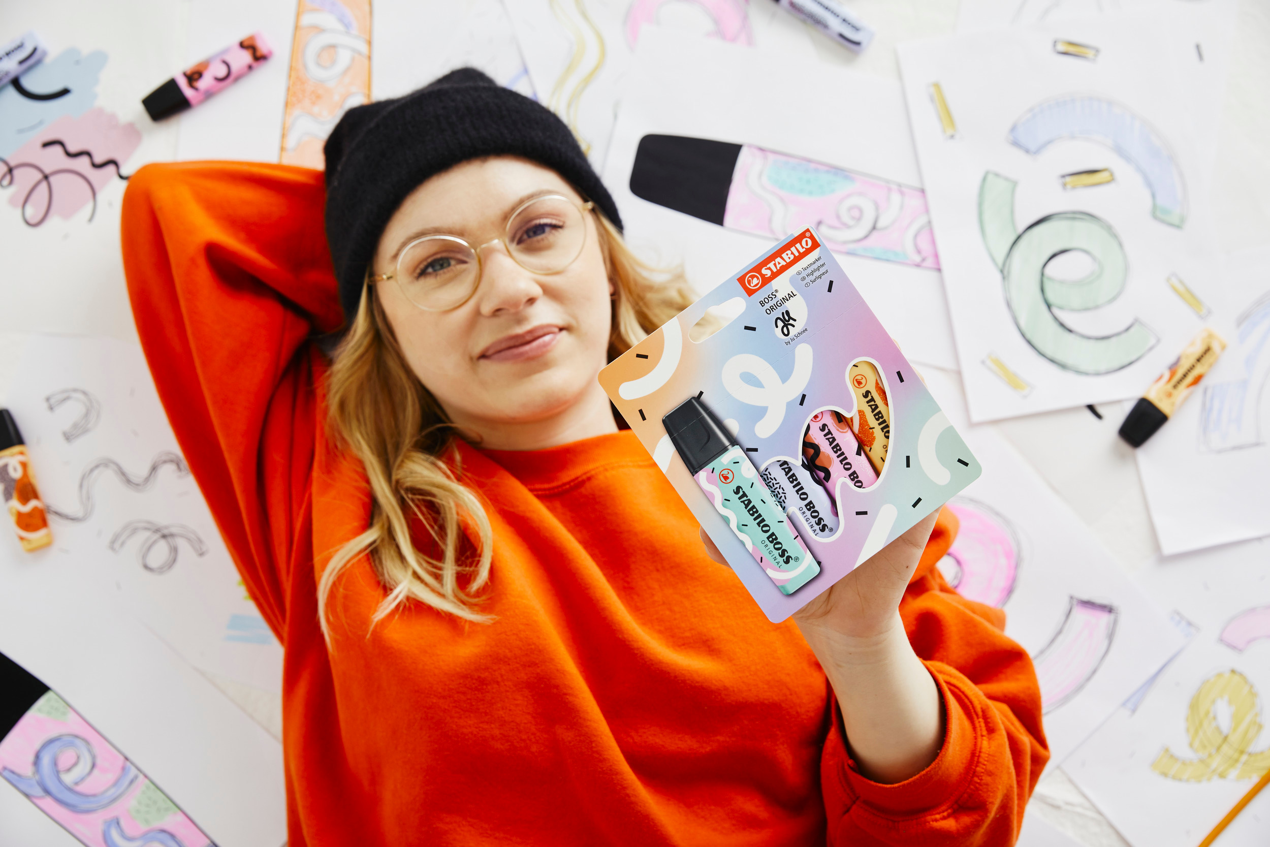 STABILO BOSS ORIGINAL Pastel by Ju SchneeEINZIGARTIGES DESIGNTextmarker - STABILO BOSS ORIGINAL Pastel by Ju Schnee -4er Pack - Hauch von Minzgrün, Wolkenblau, frische Fuchsie, sanftes OrangeDie angesagte Berliner Künstlerin Ju Schnee hat das Design für diese Special Edition des Klassikers STABILO BOSS ORIGIANAL entworfen. Damit macht nicht nur die Arbeit mit dem Textmarker noch mehr Spaß, sondern auch kreative Hobbies, wie Malen, Lettern und Sketchnoting.