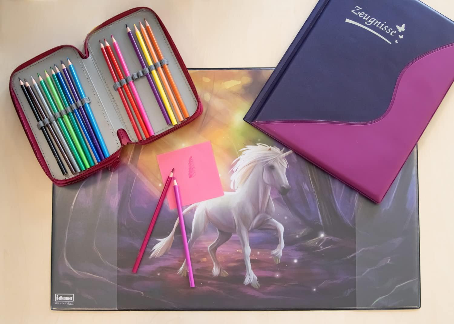 Im Laufe eines Schul- und Berufslebens sammeln sich viele Zeugnisse, Zertifikate und Urkunden an, welche es sicher aufzubewahren und zu schützen gilt. Das Idena Zeugnisringbuch für Dokumente im DIN A4 Format beinhaltet bereits 10 glasklare Prospekthüllen in fester 120µ Premiumqualität. Weitere Klarsichthüllen können mit Hilfe der 4-Ring-Mechanik abgeheftet werden. Das wattierte Hardcover der Mappen ist besonders robust und schützt Ihre Dokumente sicher vor Verschmutzungen und Beschädigungen. Das schlichte Motiv in glatter und rauer metallic-glitter Oberfläche wirkt edel und altersunabhängig. Dem silberfarbenen Aufdruck Zeugnisse ist ein verspielter i-Punkt in Sternenform hinzugefügt.