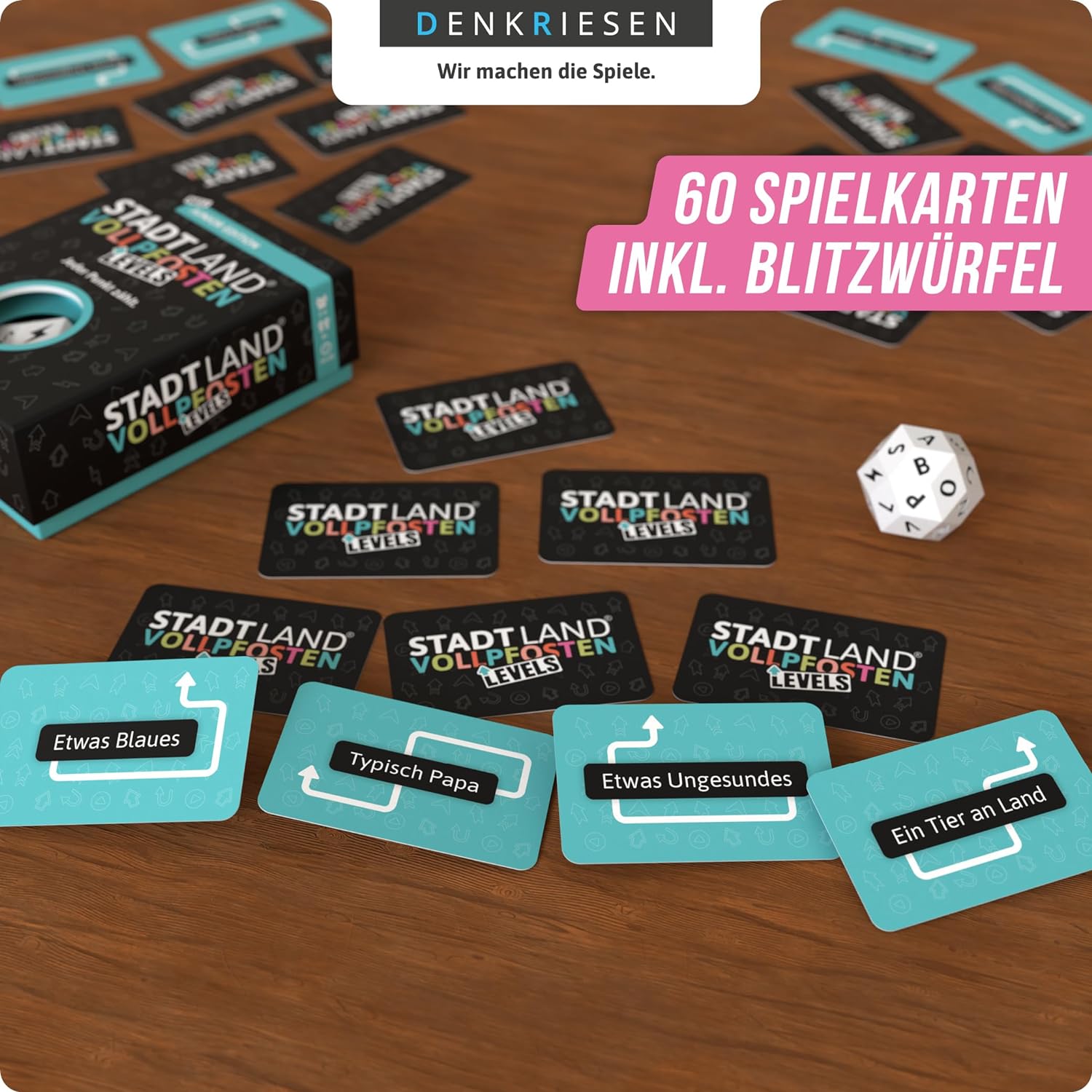 Weiterführende Links zu "DENKRIESEN Familienspiel Stadt Land Vollpfosten® Levels – Junior Edition | Ab 8 Jahren | 2-6 Spieler"