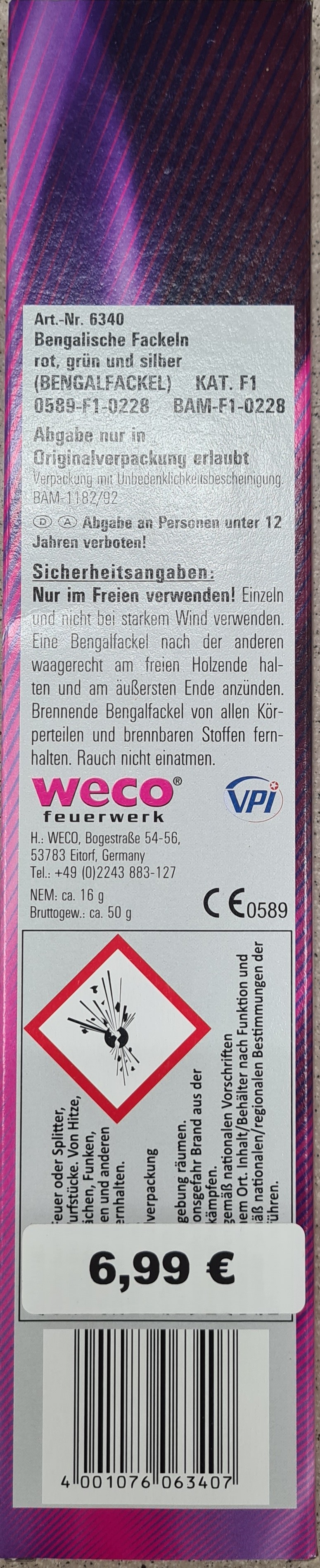 Weiterführende Links zu "Weco Bengalische Fackeln Jugendfeuerwerk ca. 30cm"