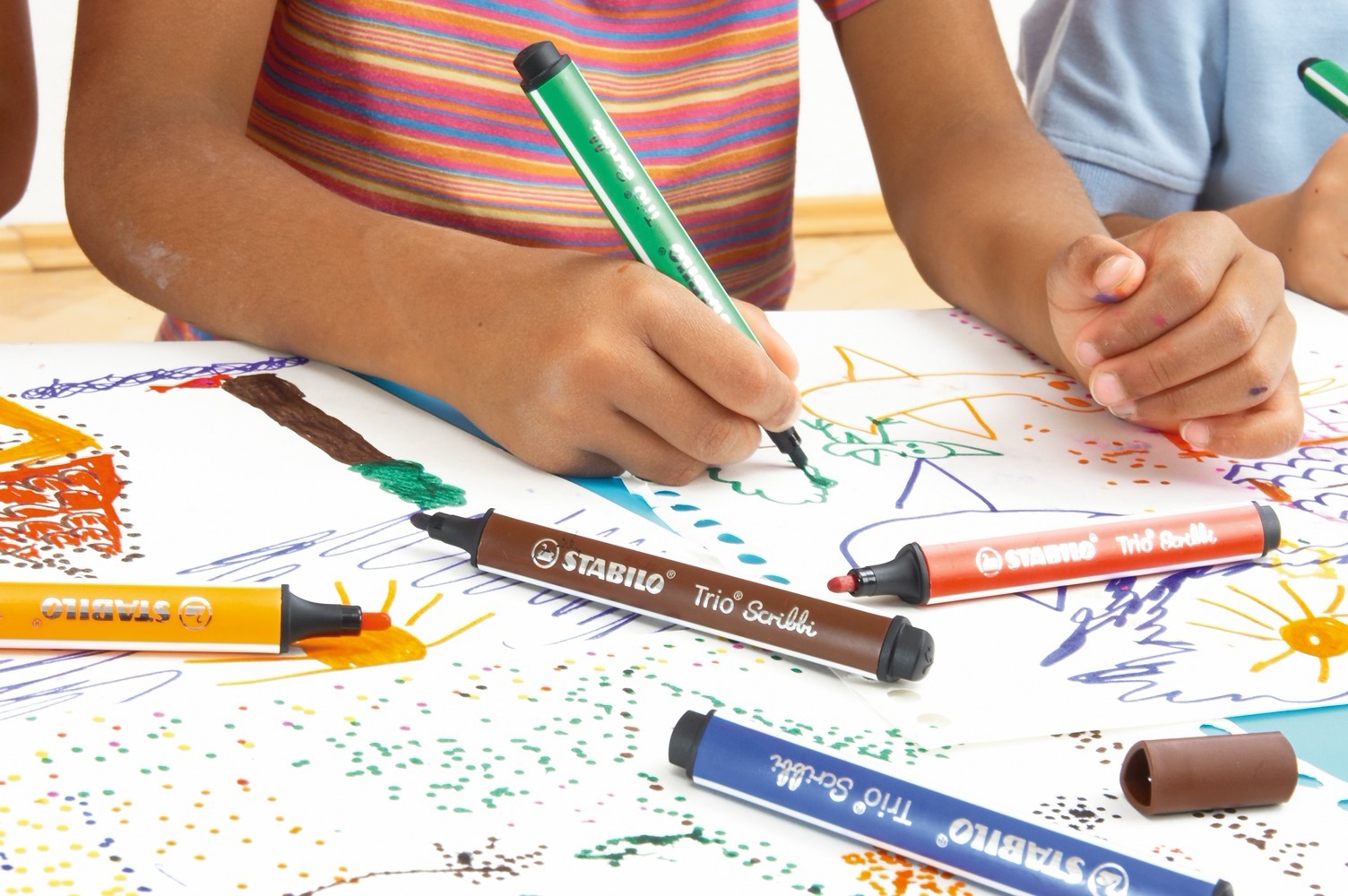 ACHTUNG! Nicht geeignet für Kinder unter 36 Monaten, wegen verschluckbarer Kleinteile. Dank seiner gefederten, dicken Spitze ist der STABILO Trio Scribbi nahezu unverwüstlich. Das ergonomische Dreikant-Design sorgt beim Malen für sicheren Halt in Kinderhänden. Die intensiven Farben sind super-auswaschbar und lassen sich leicht von Händen und Kleidung entfernen. Die Kappe lässt sich einfach am Stiftende aufstecken. Unverwüstlicher Filzstift, dank robuster, dicker und gefederter Spitze Super-auswaschbare Farben für problemlose Reinigung von Händen und Kleidung Ergonomisches Dreikant-Design für optimalen Halt in Kinderhänden Erhältlich in 14 Farben Strichstärke: 1,5 - 2,0 mm https://youtube.com/watch v=tueQtGZkceQ https://youtube.com/watch v=cKXEKhQGFsM https://youtube.com/watch v=QYcF2Cwu1eg