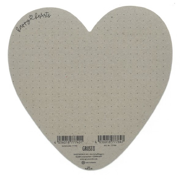 - in Herzform, mit Foliendruck in Kupfer veredelt