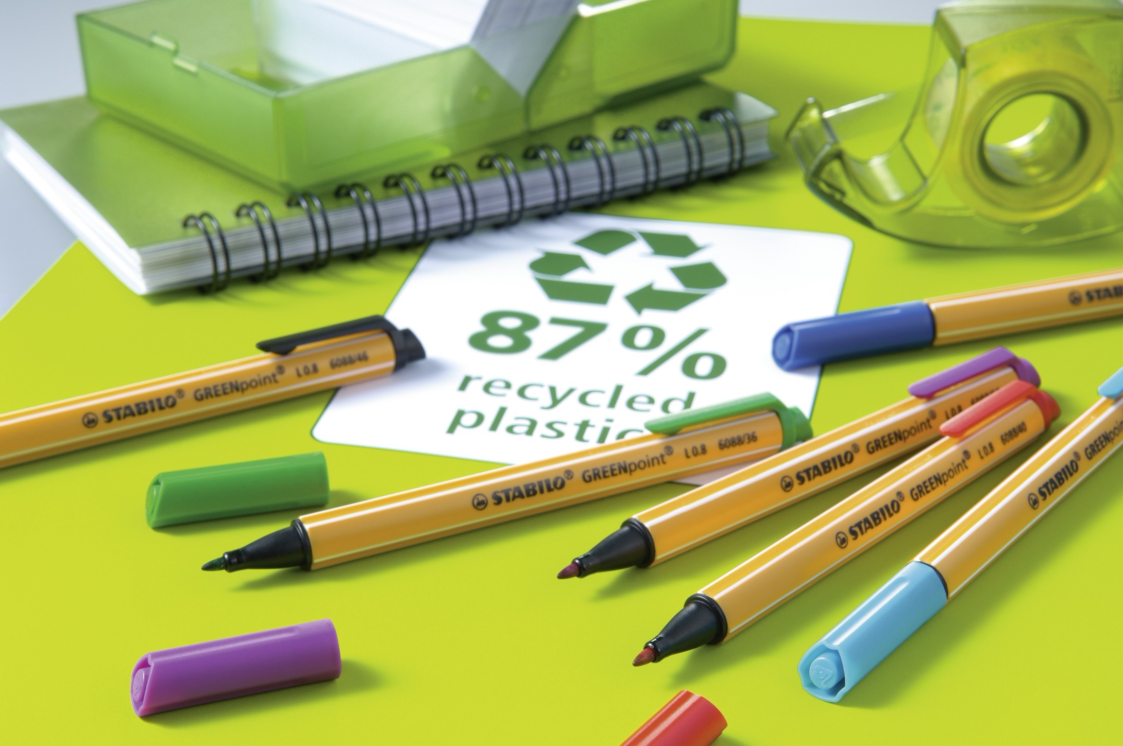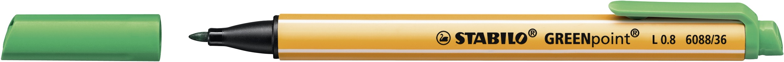 STABILO GREENpoint. Filzschreiber für Schüler, Lehrer, Eltern und Büroangestellte mit hohem Umweltbewusstsein. Hergestellt aus 87 % recyceltem Kunststoff. Robuste breite Spitze mit 0,8 mm Durchmesser - für sanftes Schreiben, ausdrucksstarkes Hervorheben und farbintensives Strukturieren. Handliche Stiftlänge und Clip für mehr Mobilität. Kappe am Stiftende aufsteckbar. Filzschreiber mit robuster, breiter Spitze für sanftes Schreiben, ausdrucksstarkes Hervorheben und farbintensives Strukturieren Hergestellt aus 87 % recyceltem Kunststoff Weltweit erster Stift mit Cradle to Cradle Zertifizierung Handliche Stiftlänge und praktischer Clip für unterwegs Erhältlich in 6 Farben und der Strichstärke: 0,8 mm 0 0
