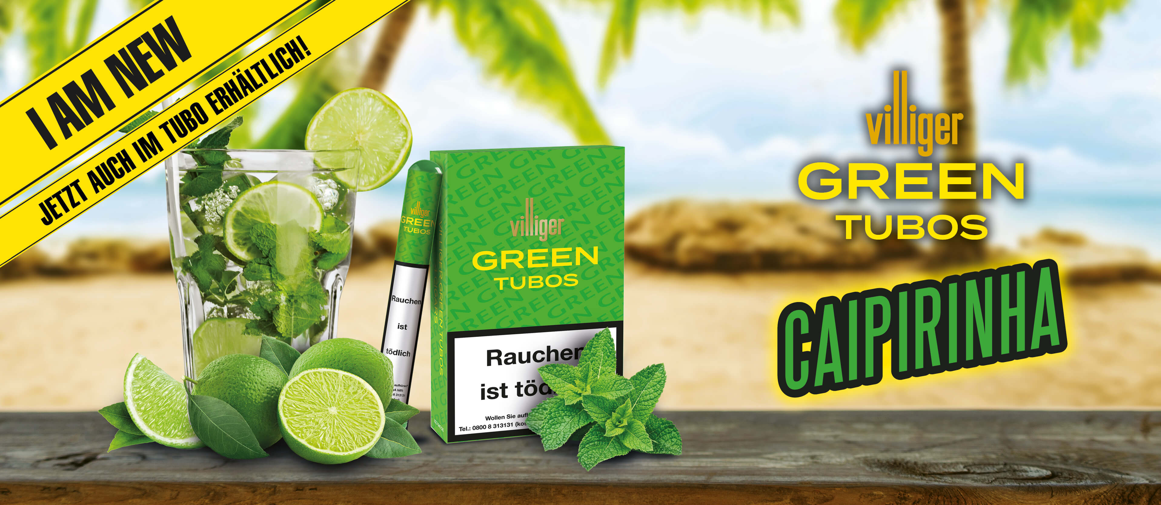 Die Villiger Green Tubos entführen Sie mit einem Zug in den mit Sicherheit verdienten Karibik-Urlaub. In Anlehnung an den brasilianischen Sommercocktail Caipirinha, wurden diese Zigarren mit erfrischenden Limetten und süßem Rohrzucker aromatisiert. Die in Deutschland produzierten und maschinell hergestellten Longfiller haben eine Länge von 12,2cm, einen Durchmesser von 1,15cm sowie ein Ringmaß von 29. Die Tabake stammen natürlich in Caipirinha-Manier alle aus Brasilien.
